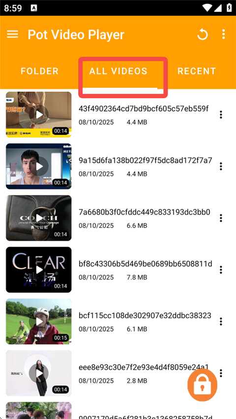 1、可以试着将横屏播放改为竖屏播放,打开potplayer播放器,进入【ALL VIDEOS】,选择需要播放的视频。