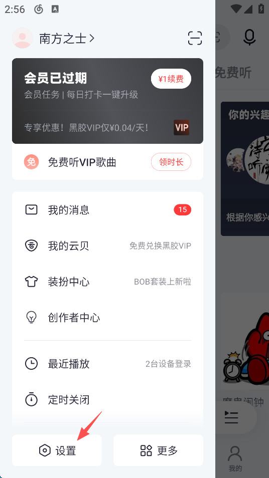 在菜单底部找到设置选项,点击进入应用的详细设置页面。