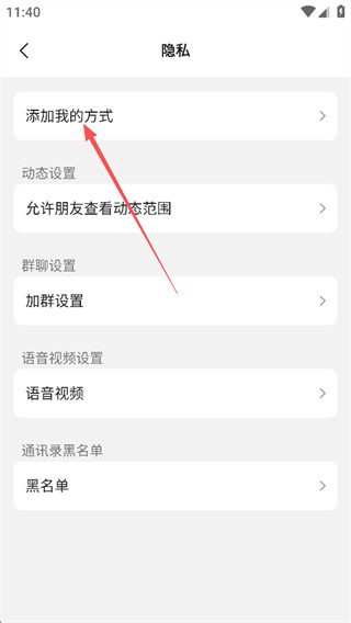 点击【隐私】,查看账号安全与添加好友相关设置。