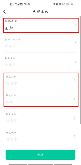 在“我的”页面可编辑求职意向,包括工作类型、期望行业及岗位偏好。