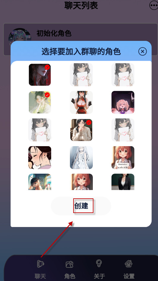 2、接着任意选择一个要入群聊的角色,如图所示。