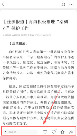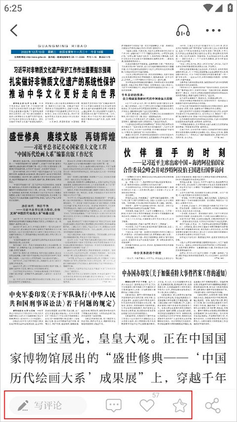 4、打开后的报纸版面可以写评论,可以点赞和收藏。