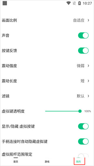 2、调整画面比例、音效、震动及虚拟按键显示与隐藏选项。