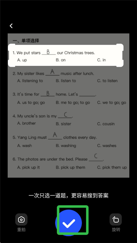 3、框选好题目后,点击√即可。