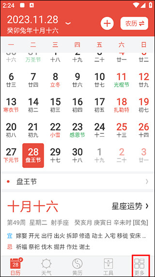 2、万年历黄历:整合农历、公历和节气信息,详细呈现宜忌、时辰及运势参考