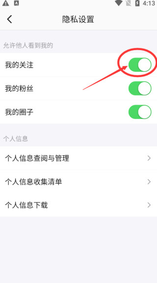 3、然后我们选择将默认的我的关注按钮勾掉,便可以让别看不到自己的喜好啦!