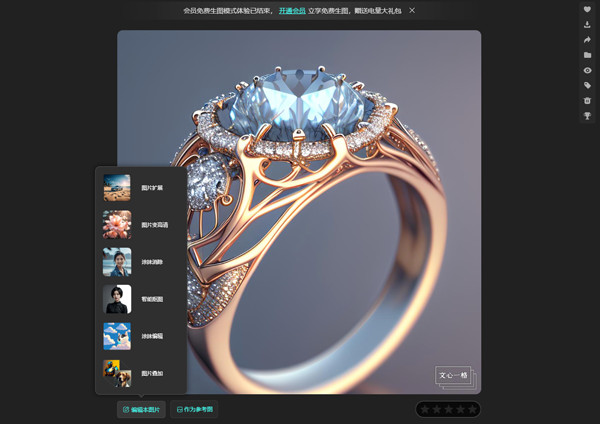 创作完成后,可以编辑图片或者把图片作为下一次生成内容的参考图。