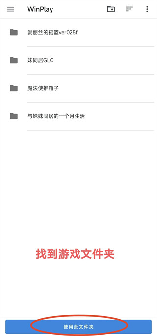 4、找到存放游戏的文件夹,点击使用此文件夹确认路径。
