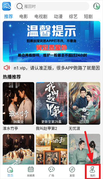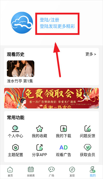 进入首页后点击我的