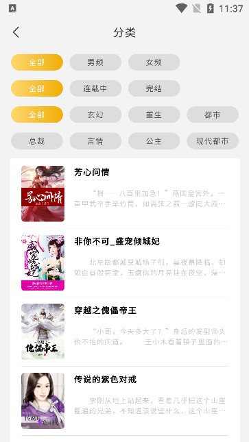 3、用户能够依据个人喜好挑选小说类型,通过过滤搜索的方式,更快捷地找到自己喜爱的小说。