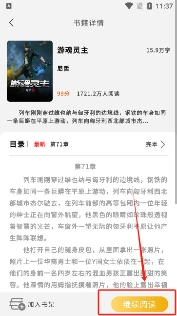 3、选择喜欢的小说可以进入到详情了解小说的内容